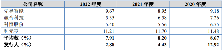 据招股书显示,纳科诺尔将无锡先导智能装备股份有限公司(以下简称“先导智能”)、深圳市赢合科技股份有限公司(以下简称“赢合科技”)、江门市科恒实业股份有限公司(以下简称“科恒股份”)、广东利元亨智能装备股份有限公司(以下简称“利元亨”)认定为同行业可比上市公司。