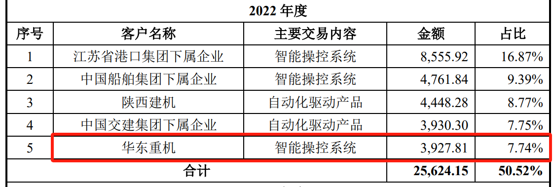 而据招股书“报告期内主要客户情况”处显示,2022华东重机系港迪技术第五大客户,对应销售金额分别为3,927.81万元,可以看出,这比港迪技术招股书“关联交易”处披露的关联销售金额多了270.29万元。