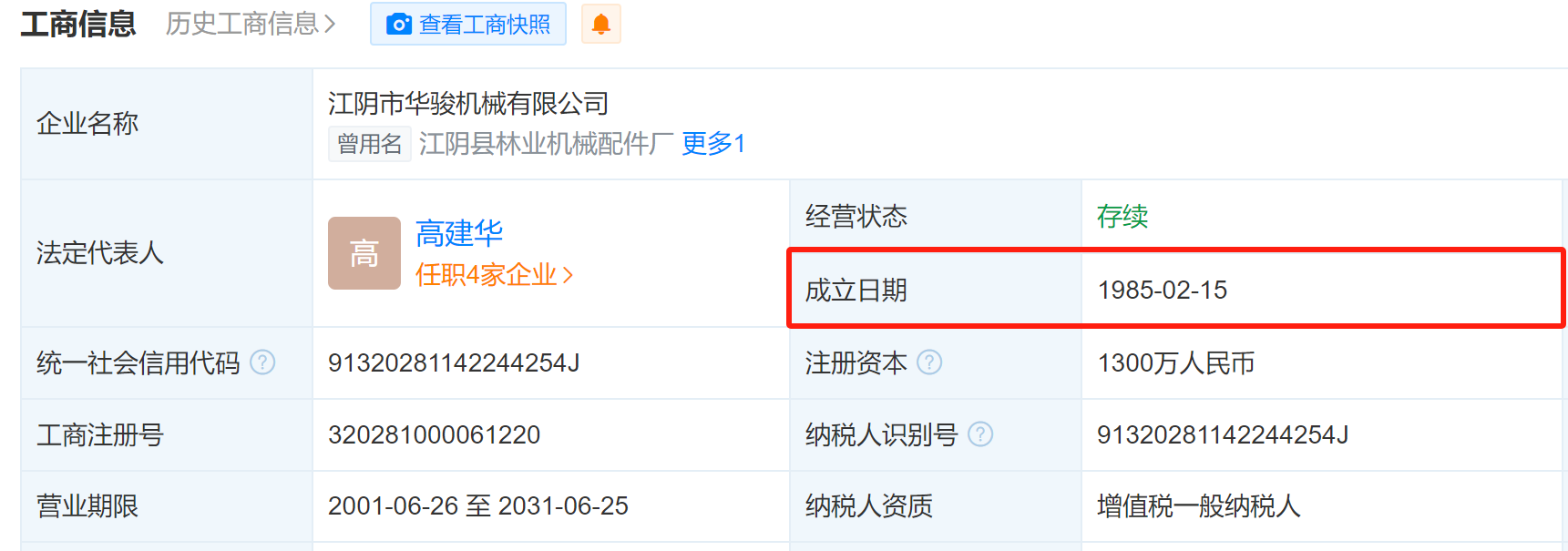 据招股书谢耀坤简历显示,1982年至1985年,谢耀坤曾任江阴市林业机械配件厂(现改名为“江阴市华骏机械有限公司”,以下简称“林业机械”)销售科长。而据林业机械工商信息显示,林业机械成立于1985年2月15日,这比谢耀坤开始担任林业机械销售科长的时间晚了三年之多。