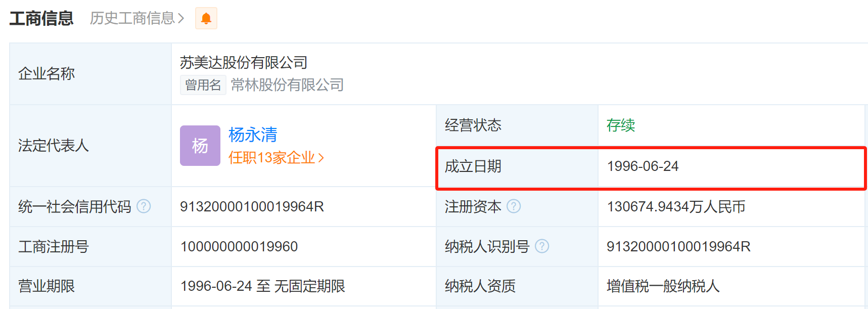 据招股书谢文庆简历显示,1992年8月至1996年4月,谢文庆曾任常林股份有限公司(现改名为“苏美达股份有限公司”,以下简称“常林股份”)技术员。而据常林股份工商信息显示,常林股份成立于1996年6月4日,这比谢文庆开始担任常林股份技术员的时间晚了差不多四年。