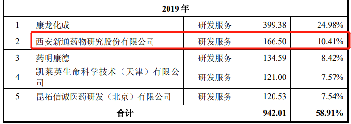 据申报稿招股书显示,西安新通药物研究股份有限公司(以下简称“新通药物”)为必贝特2019年第二大供应商,对应采购金额为166.50万元,公司主要向其采购研发服务;另外招股书还显示,截至2019年12月31日,必贝特对新通药物的应付账款余额为74.00万元。