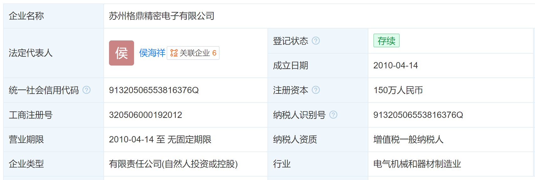 (截图来源于格鼎精密工商信息)