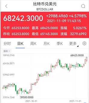 比特币突破68000美元/枚,再创历史新高。 上个月推出的美国首个比特币期货ETF“ProShares比特币策略ETF”周一上涨超过8%。